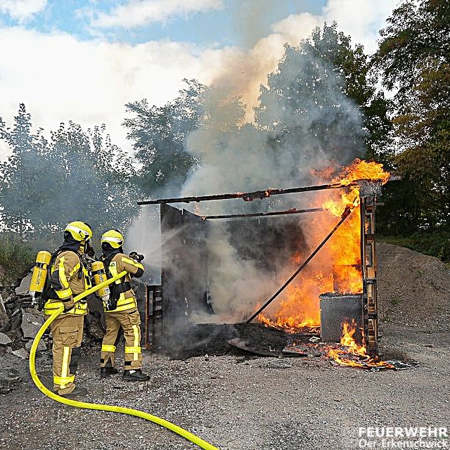 Besondere Highlights waren die drei Einsatzübungen, die über den Tag verteilt stattfanden. Zunächst galt es, einen kleinen Gefahrguteinsatz abzuarbeiten. Hier stellte sich die Einsatzgruppe für Chemie- und Strahlenschutz vor. Die zweite Übung simulierte einen Verkehrsunfall mit zwei PKW und einer eingeklemmten Person. Die Zuschauer konnten die technische Rettung sowie die Zusammenarbeit zwischen Feuerwehr und Rettungsdienst aus nächster Nähe beobachten. Den Abschluss bildete eine Brandübung: Simuliert wurde ein Entstehungsbrand in einem Zimmer. Hier wurde eindrucksvoll deutlich, wie schnell sich ein Feuer zu einem massiven Vollbrand entwickeln kann und wie die Feuerwehr zur Brandbekämpfung vorgeht. Dabei zeigte sich auch, wie wichtig Rauchmelder zur frühzeitigen Erkennung von Bränden sind.